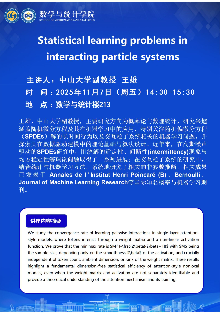 中山大学副教授王雄-Statistical learning problems in interacting particle systems