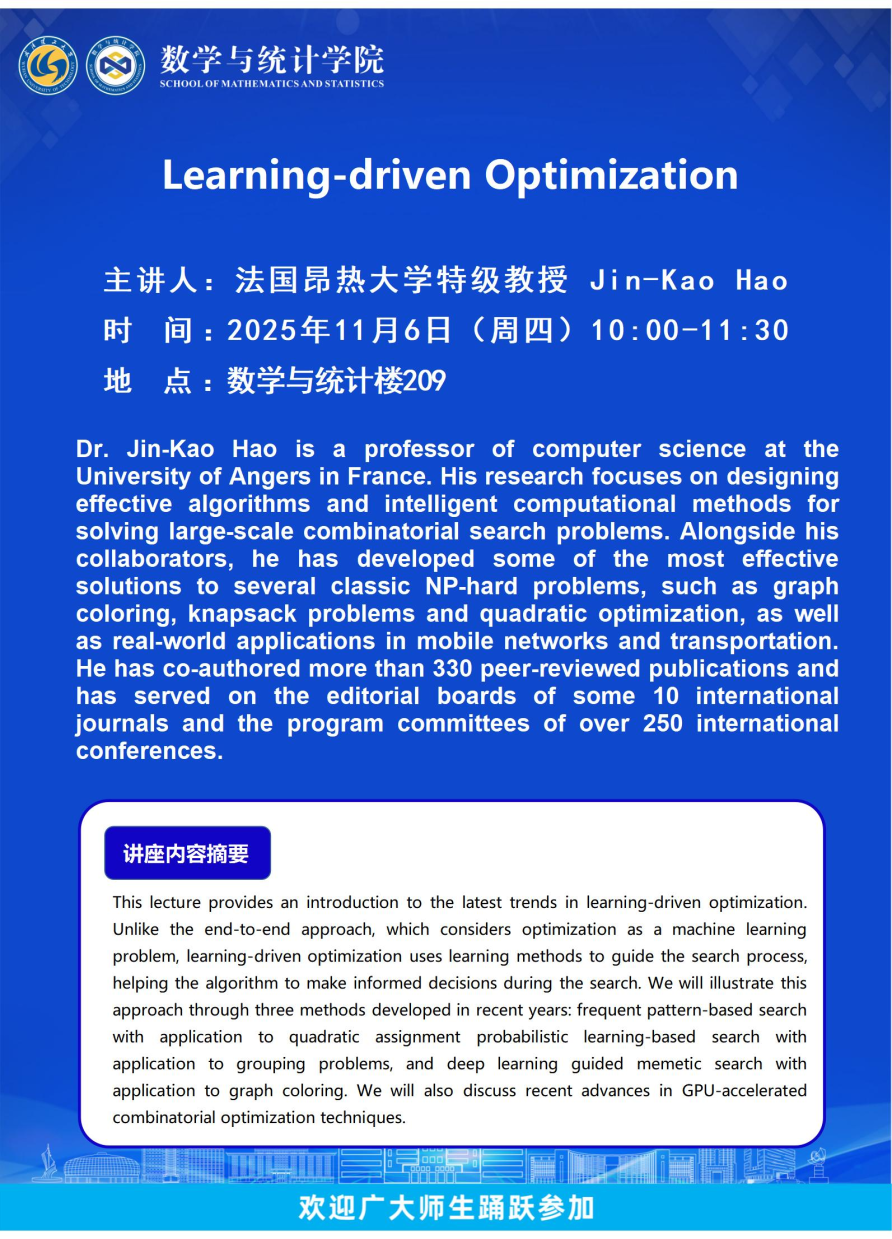 法国昂热大学特级教授Jin-Kao Hao-Learning-driven Optimization