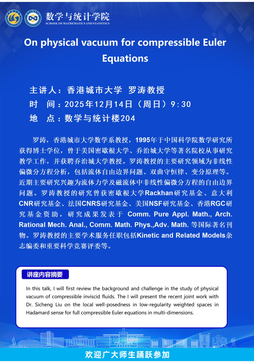 香港城市大学罗涛教授-On physical vacuum for compressible Euler Equations