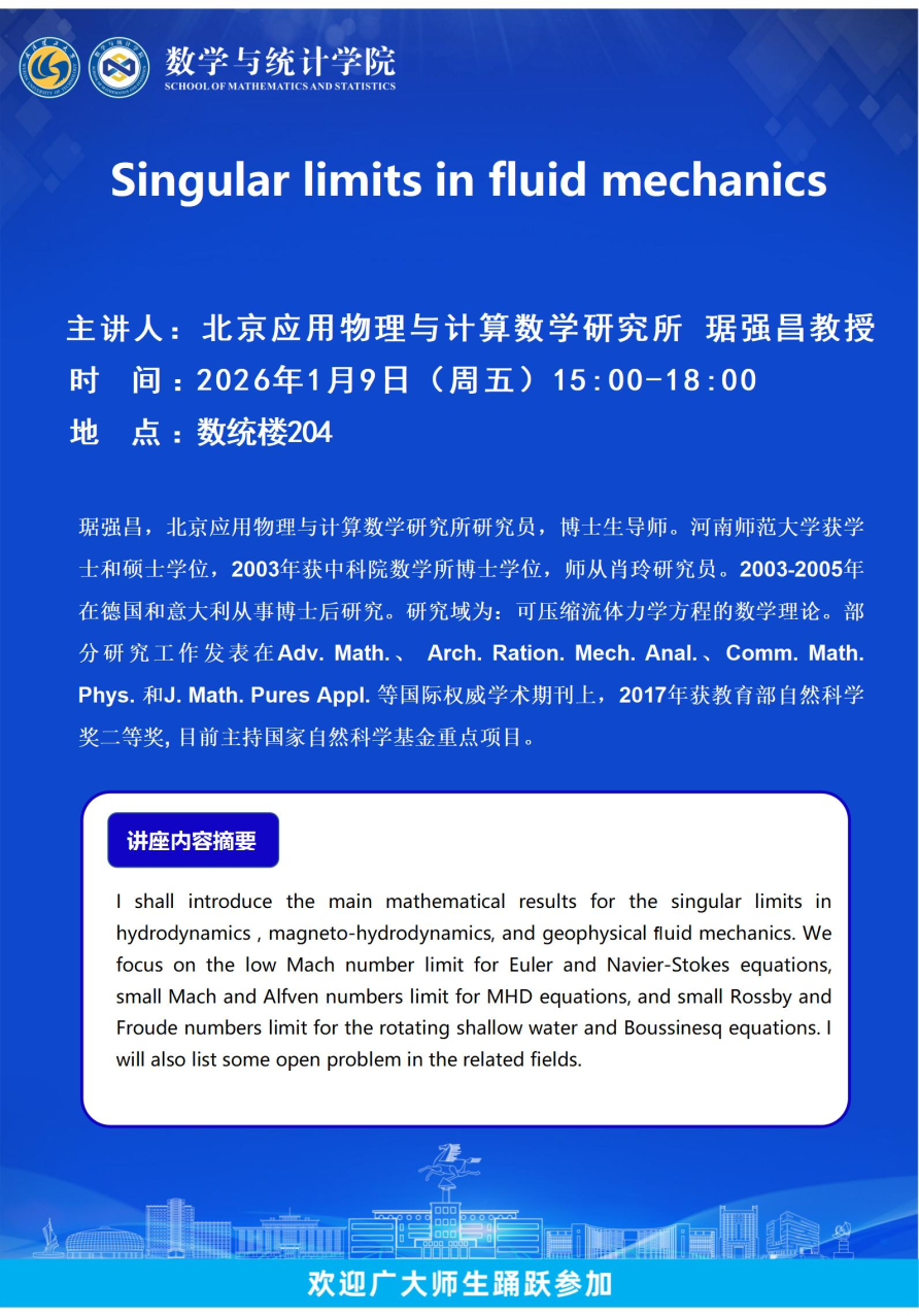 北京应用物理与计算数学研究所 琚强昌教授-Singular limits in fluid mechanics