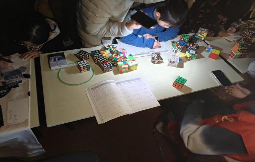 数智知识竞答区成为首个心理破冰点。面对涵盖基础数学常识与智能科技生活应用的题目,同学们或独立思考沉淀情绪,或组队讨论交换思路,在策略性选择题目难度的过程中,悄然缓解了日常学业带来的心理压力。数学小游戏挑战区是心理专注力与耐挫力的试炼场。数独盘前,飞速旋转的魔方,考验着情绪调控与手脑协调。即便遇到解题瓶颈,大家也互相帮助鼓励,成功通关时的笑容格外灿烂。