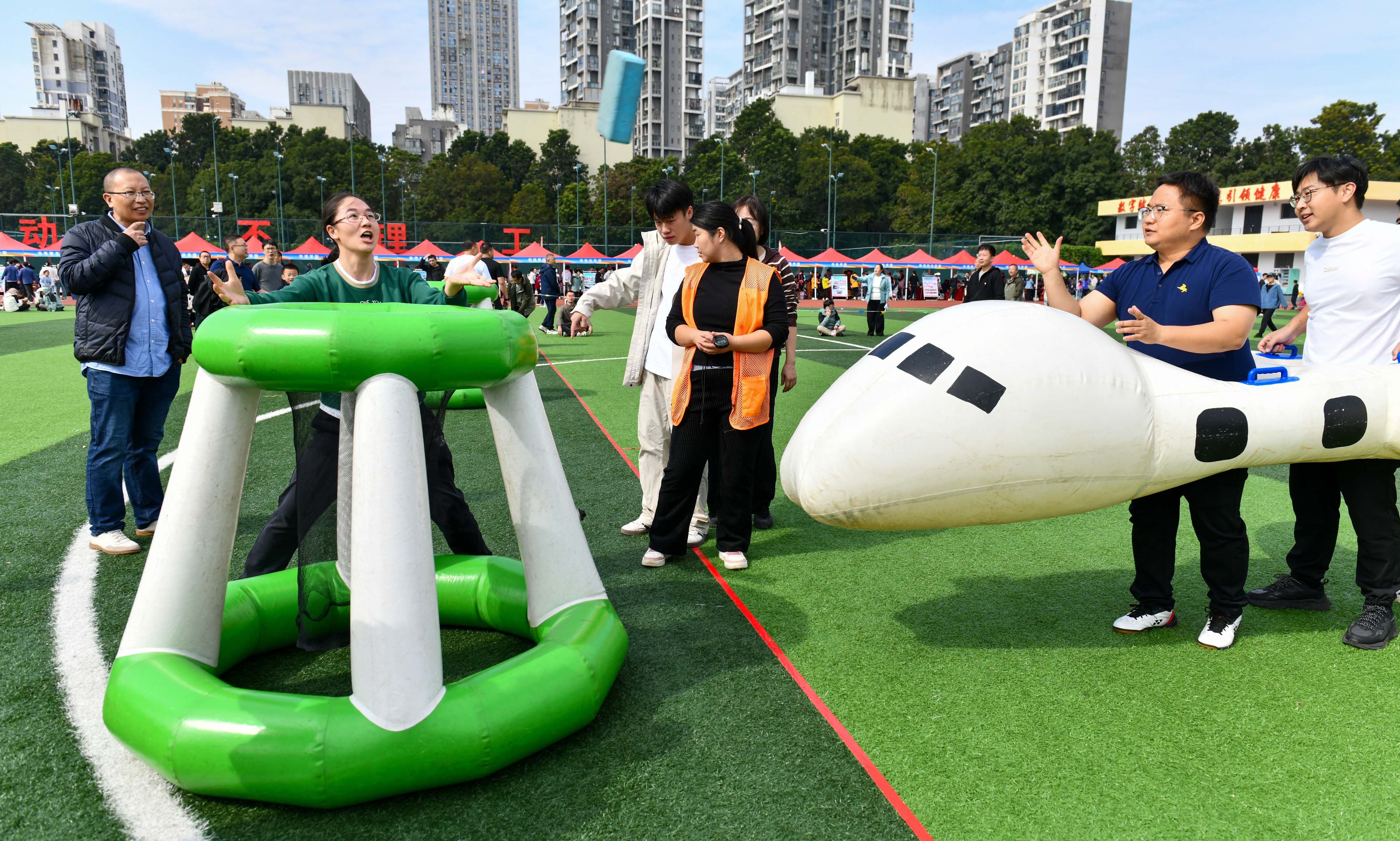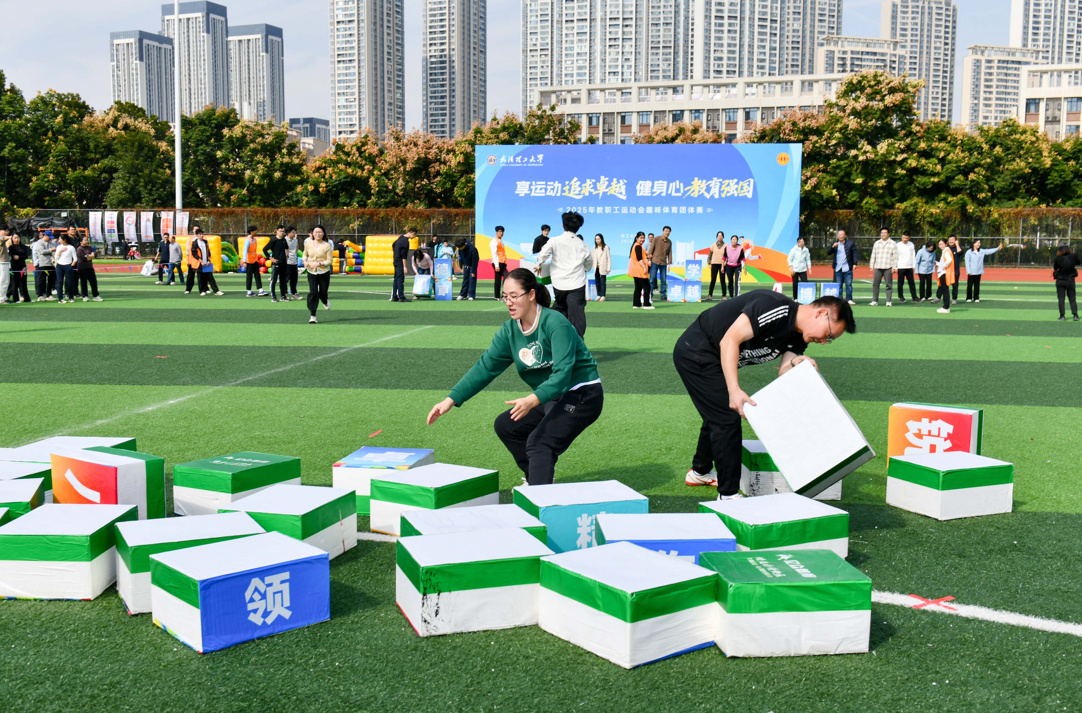 作为一支去年刚刚成立的年轻队伍,我们已是第二次踏上校运会的赛场。老师们褪去讲台上的严肃,化身活力四射的“全能玩家”!本次趣味运动会包括“合作共赢”、“空投补给”、“汉诺塔”、“理工精神”、“共赴未来”与“精准投递”六个项目。在“合作共赢”中步调一致,在“汉诺塔”前运筹帷幄,于“精准投递”时屏息凝神……六大趣味项目,项项都留下了大家专注拼搏、欢声笑语的身影。老师们全情投入、彼此鼓励的瞬间,早已汇聚成赛场上最动人的风景。那份为目标拼尽全力的执着,那份“乐在其中”的乐观与团结,比任何奖牌都更加闪耀!