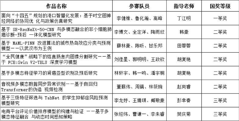 参赛团队围绕人工智能、医学影像、智慧城市、心理健康与社会治理等方向开展应用研究。作品涵盖AI伪造视频识别、医学影像辅助诊断、城市热岛效应预测、港口协同优化、学生抑郁风险评估及电商评论排序等领域。研究充分展示了同学们运用统计建模思想与数据分析方法解决实际问题的能力,也体现了我校统计学学科交叉融合的人才培养特色。