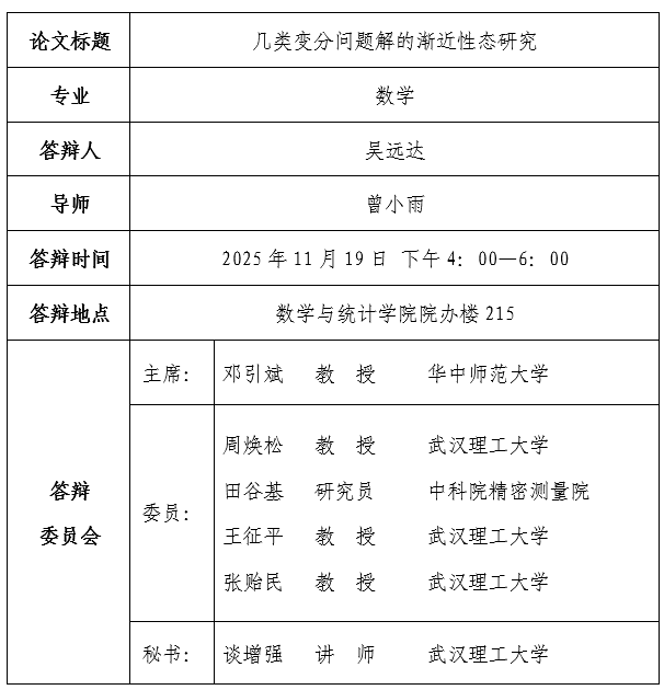 【必赢3003no1线路检测中心】博士学位论文答辩公告(吴远达)